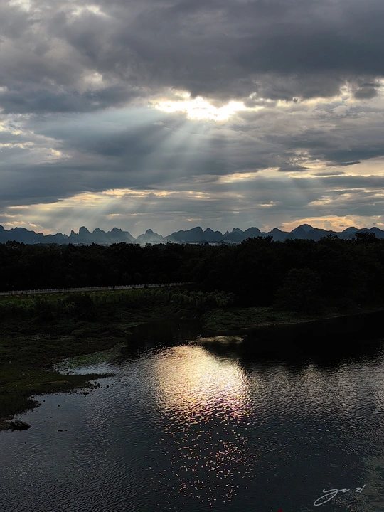 龙门大桥是桂林市的摄影打卡地,落日很出彩。出去的时候看着天上厚厚的云层和一团乌云,想着今天的龙门大桥会有什么样的景色😜 还好,每次去龙门大桥都没有失望过😃😃