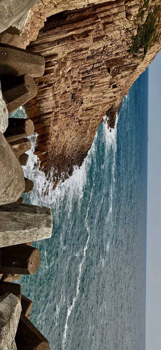萬宜路的終點在萬宜水庫的主堤壩,亦稱東壩。右側是水壩緩衝區,其外海一邊堆疊著巨大的錨形石。視線再往外移,則見如被利刃削開的名勝破邊洲。如從涼亭旁的車道下走,便是糧船灣地質步道。