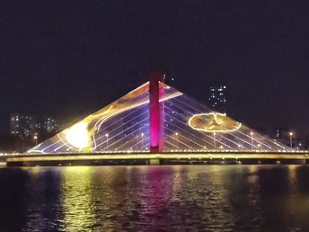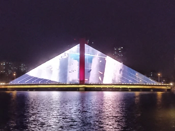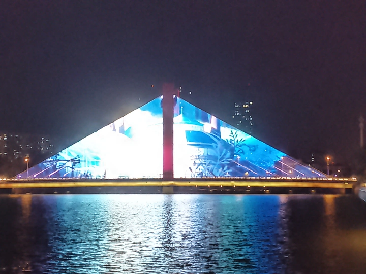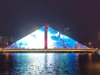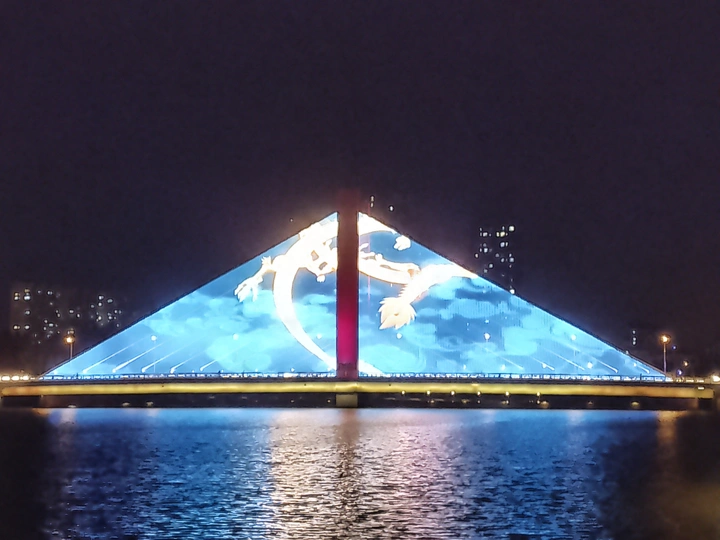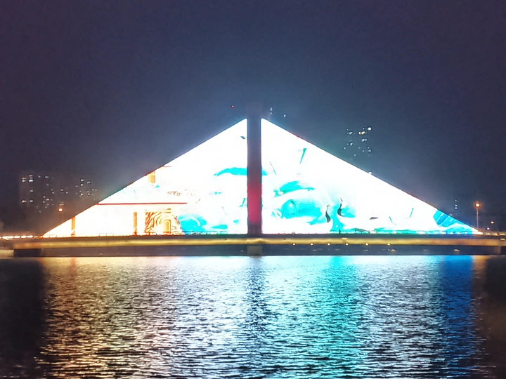 夜幕降临,东辽河畔一栋栋高楼外墙彩色灯光秀亮了起来。高大的花篮布滿了各种艳丽的插花,仍留有节日的气氛,路灯散发出奶黄色的光芒,使河边溜弯者得到一缕温暖;夜晚的东辽河斜拉桥亮起五彩缤纷彩色视频,使城市变的活力起来;装扮着城市的夜晚,使夜晚更加迷人。