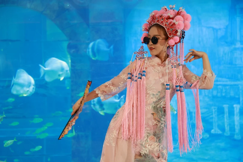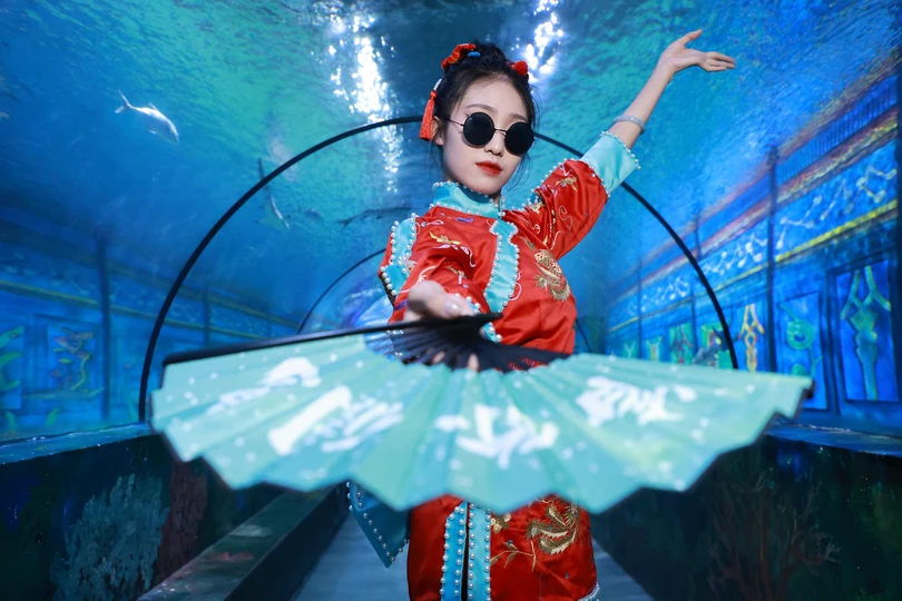 这是为海洋世界中秋国庆双节拍摄的一组主题作品,以"潮起东方乐无边"为题,预示着当东方的海潮涌起时,欢乐和喜悦无穷无尽。