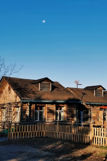 清晨6时,漠河北极村的灿烂的阳光已洒满静谧的村庄,而此刻月亮还高挂天空,那么皎洁明亮,浪漫唯美。