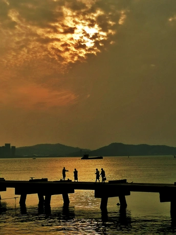 汕头,三江入海,是中国大陆唯一一个市区拥有内海湾的城市。由于被江海分割成岛,又名鮀岛,这里地处韩江、榕江、练江的出海口,在三江的汇集的地方形成了天然的海湾。 汕头内海湾海域,是指东以外导流防沙堤第一转折点往西南垂直线为界,西以汕头市金平区与揭阳市行政界线及西南延伸线为界,南、北临现状岸线的水域。 这是一座旧码头栈桥,常有人来这里钓鱼、游玩。
