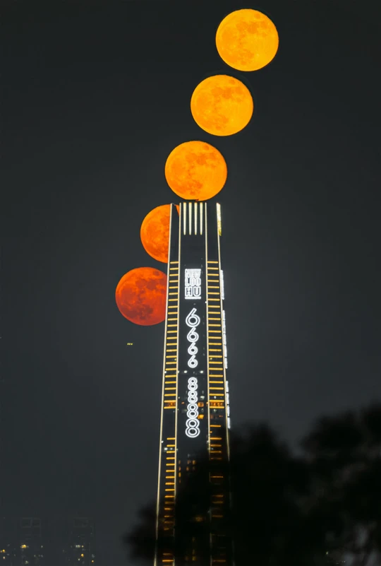 用巧摄计算机位,带月圆的时候延时拍摄月升的画面,再通过多张合成出月升城脉中心的画面