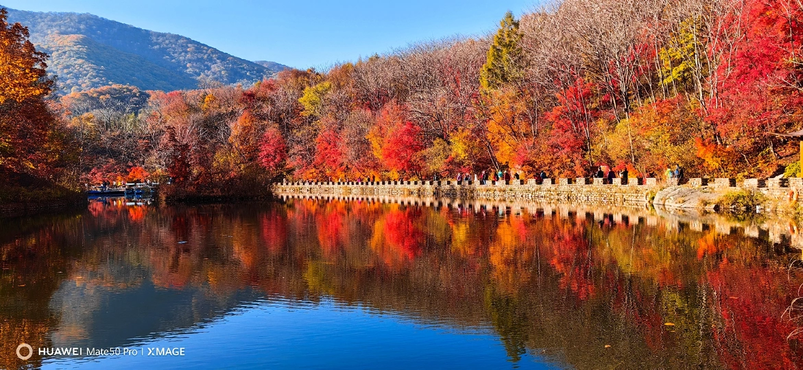 本溪大石湖风景区是中华枫叶之路,根据风景区的地域条件及资源状况,划分为两大景区大石湖景区和老边沟景区。其中大石湖景区中包含三个游览区:五龙湖、冰凌峡、木兰谷。老边沟景区的三个游览区为:巨石川、拥硌河、万象谷。大石湖风景区聚新、美、奇、特于一身,集动、静、危、夷于一体,双向进入,迂回循环,进出顺达,游览方便。正所谓:“景物宜人千古同,石湖美誉震辽东。龙潭水泻层层瀑,鹤岭云缠座座峰。遍谷木兰初夏艳,满山枫叶晚秋红。散磐聚硌林川内,梦幻天堂仙境中。”走进景区,痴迷如醉,流连忘返。 拍摄器材:华为手机Mate50pro