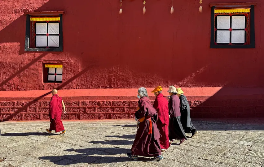 德格印经院外的转经人