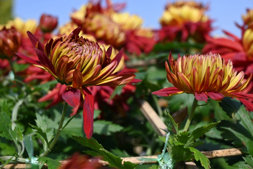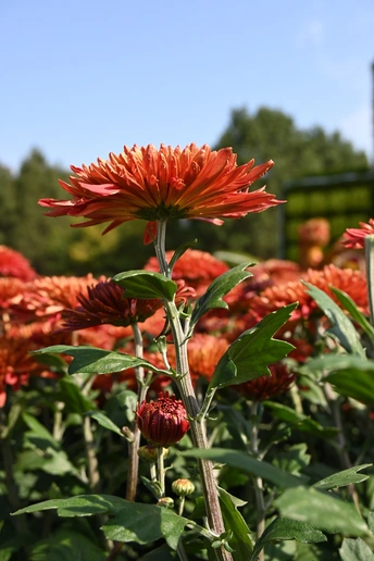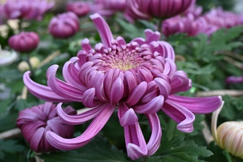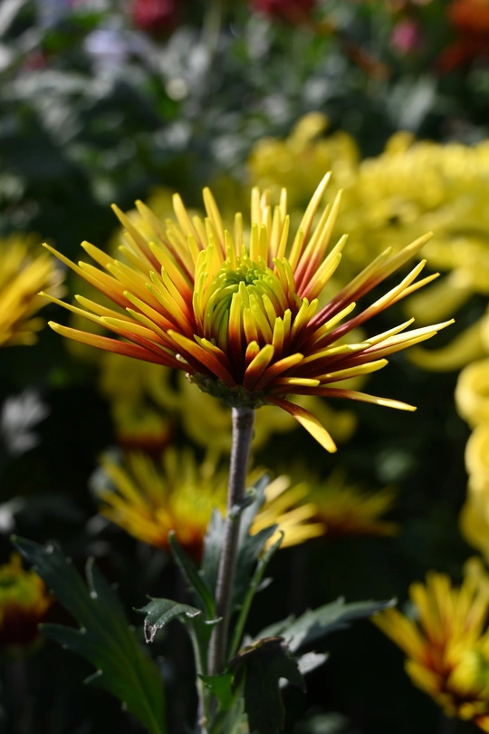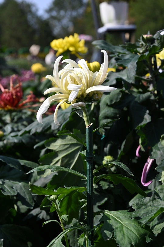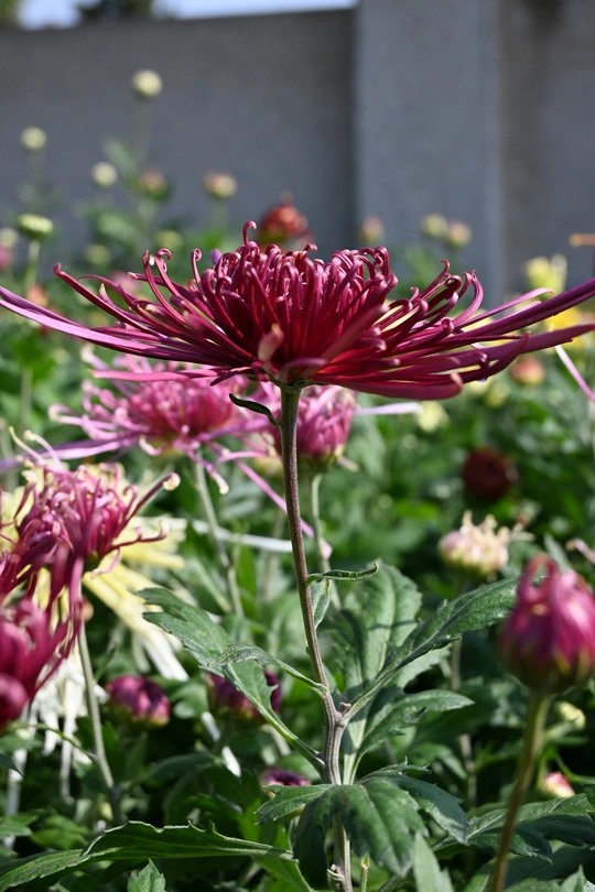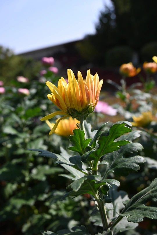 宝鸡中华石鼓园菊花展,展出100余个菊花品种,约5万盆。菊花品类繁多,包括独本菊、七彩菊、菊球、树状菊、盆景菊、悬崖菊、塔菊等。菊展还设计了菊柱、动物等多种创意造型,为菊展增添活力。大美宝鸡,菊展创意,吸引游客!