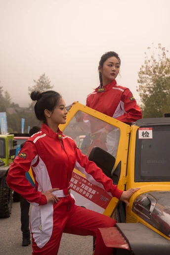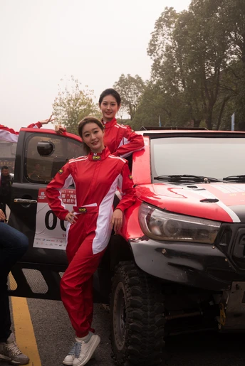 汽车越野赛启动仪式上的模特们