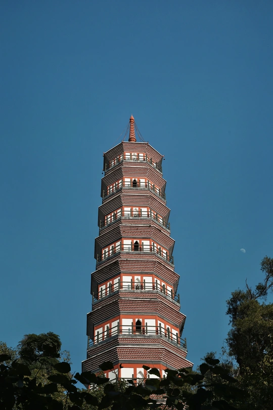 琶洲塔为八角形楼阁式,青砖砌筑,外观9级,内分17层,高50余米。塔外观外9级,塔基为八角形,红砂岩石砌筑,基角处有西方人形象的跪状塔力士,用双手或单手托塔,神态生动。