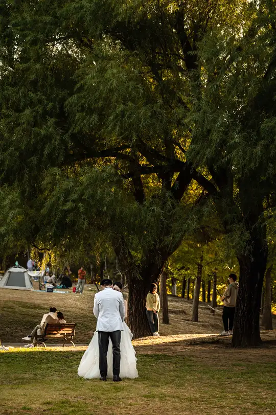 夕阳下拍到三对不同年龄段的恋人同框,让我更相信爱情。