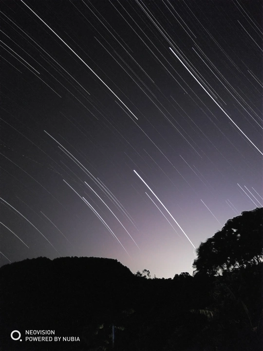 2019年在家的时候,因为用的努比亚手机,对手机摄影和拍星轨有了兴趣。在网上购买了廉价的三脚架,于楼顶放置好,并用砖头压好防止被风吹倒,扣好手机打开相机家族里的星轨模式,耐心等待两小时就拍出了这么一张并不出色的星轨照片,真令人怀念呀!那时候对手机摄影的热情与对生活的向往,恐怕再难拥有了。