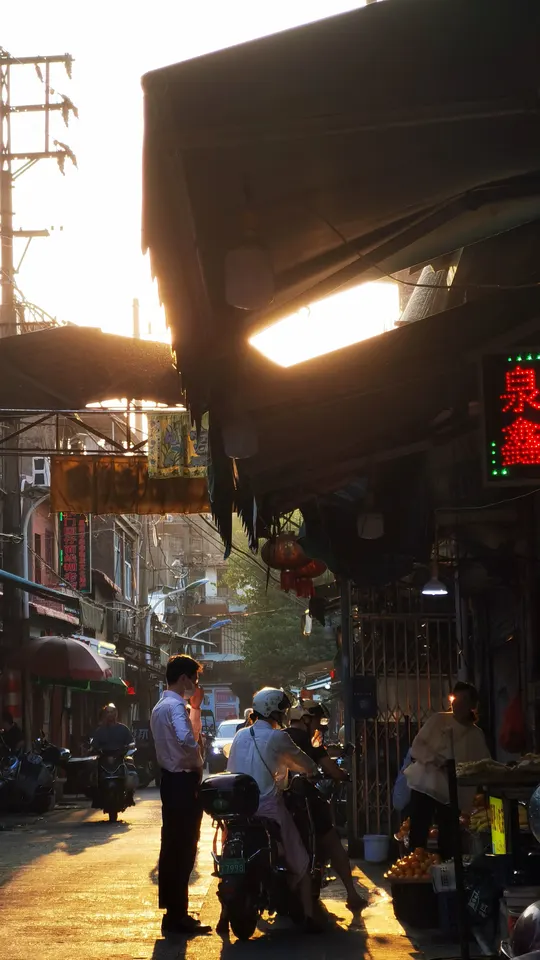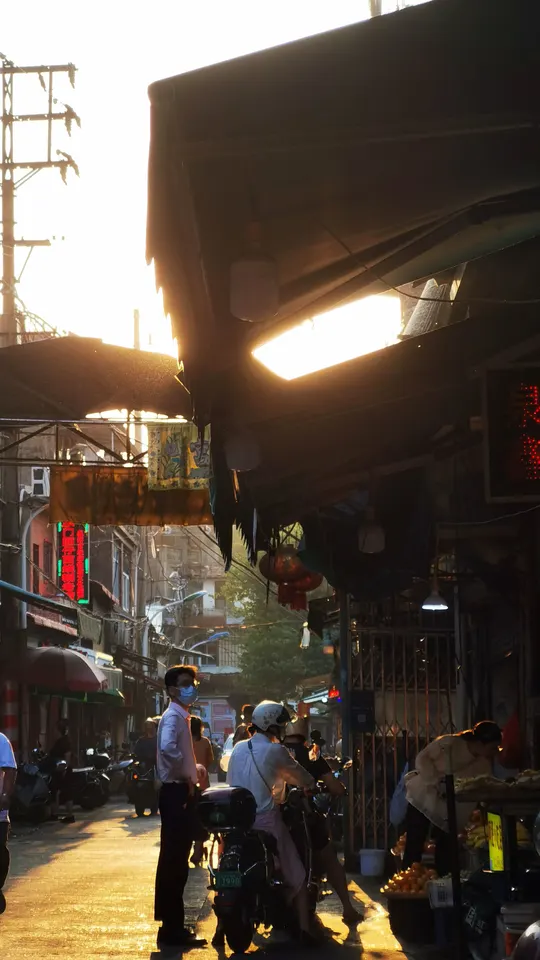 阳光下的一条街道,两旁摆满了各种小商贩的摊位,叫卖声此起彼伏,充满了人间烟火气息。