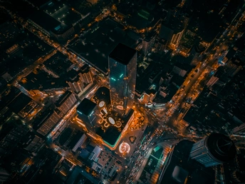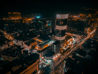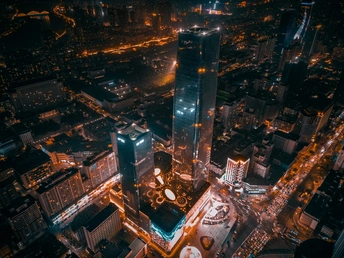 夜幕低垂,兰州西站交织的灯光熠熠生辉,如梦如幻。 高耸的建筑轮廓在暗夜中显得雄伟而壮观,绚丽的光芒倒映在静谧的夜空中。 航拍所呈现的景象,仿佛是一个欲说还休的故事,在城市的心房里悄然萦绕。 摄于大疆Mini3pro