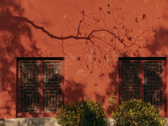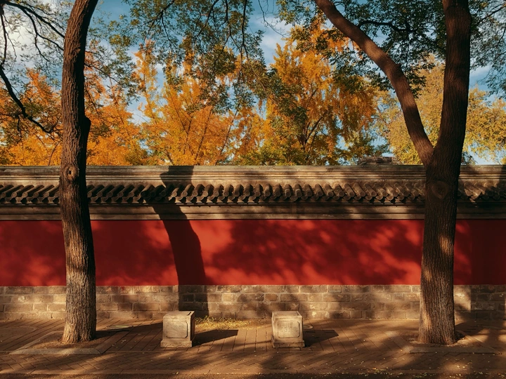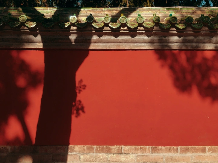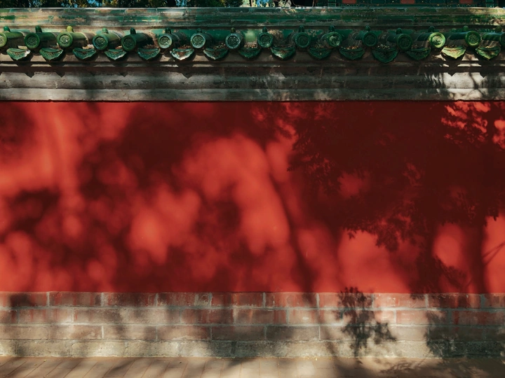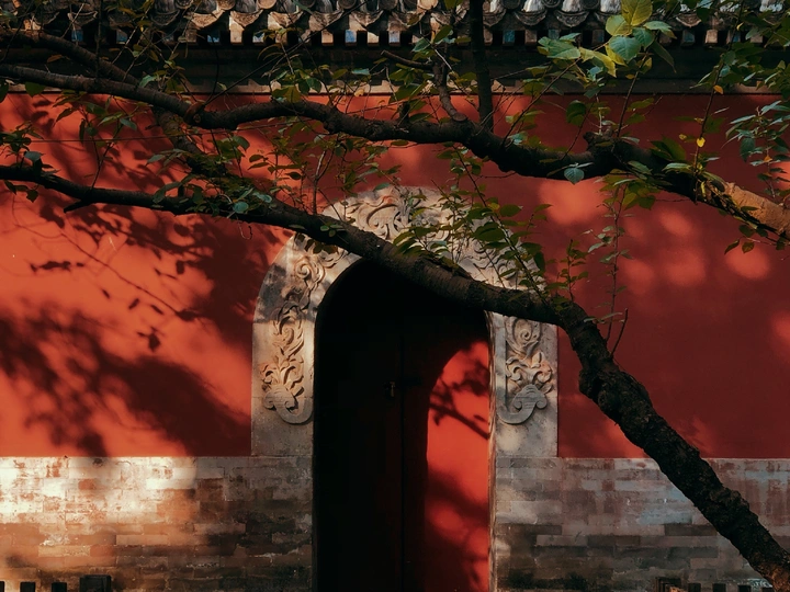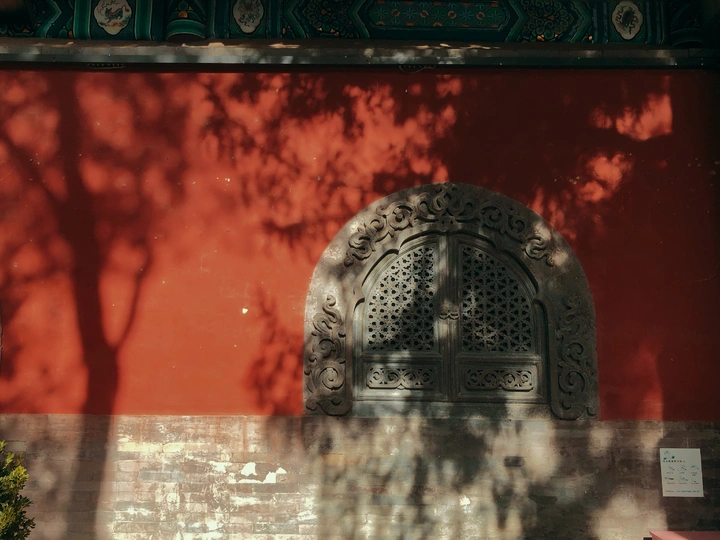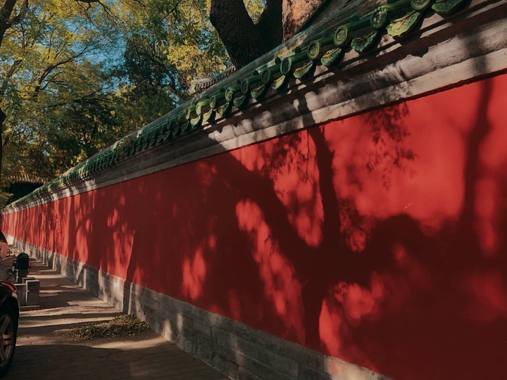 树影映红墙,如笔老墨秀的写意画,如明明灭灭的旧光阴,如老故事里的渺远回忆。