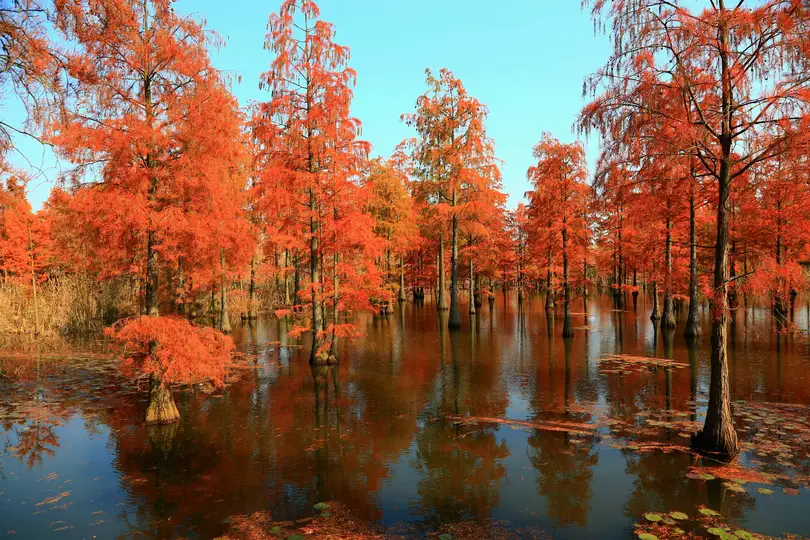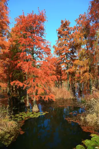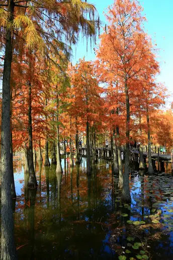 池杉(学名:Taxodium ascendens Brongn.)是杉科,落羽杉属植物,亦称池柏,沼落羽松。落叶乔木,高可达25米。主干挺直,树冠尖塔形。树干基部膨大,枝条向上形成狭窄的树冠,尖塔形,形状优美;叶钻形在枝上螺旋伸展;球果圆球形。池杉树,杉科落羽杉属,树皮纵裂成长条片而脱落,树干墓部膨大,通常有曲膝状的呼吸根。花期3月,果实10-11月成熟,球果圆球形或长圆状球形,有短梗,种子不规则三角形,略扁,红揭色,边缘有锐脊。 池杉喜深厚疏松湿润的酸性土壤。耐湿性很强,长期及在水中也能较正常生长。池衫是弃光树种,不耐荫。抗风性很强。池杉的萌芽性很强,生长势也旺。原产于美国弗吉尼亚州,中国许多城市尤其是长江流域重要的造树和园林树种。耐腐蚀。是造船、建筑好材料。
