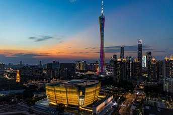 在日落的尾巴拍到了广州塔和新开的美术馆等地标建筑亮灯,伴随落日余晖真的很nice @米拍摄影APP @米拍