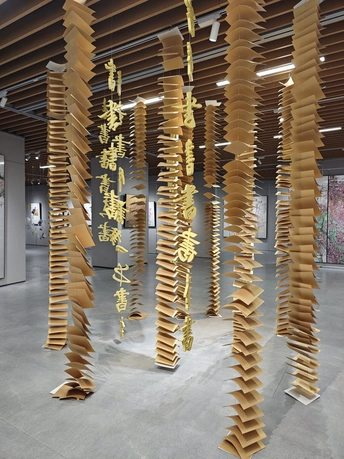 第一次见这样的创艺是在桂林的一家艺术馆,很荣幸这次又在柳州图书馆见到了同样的创艺。与之不同的是木片换成了原木色的纸张,还将书的元素也融入进去了?