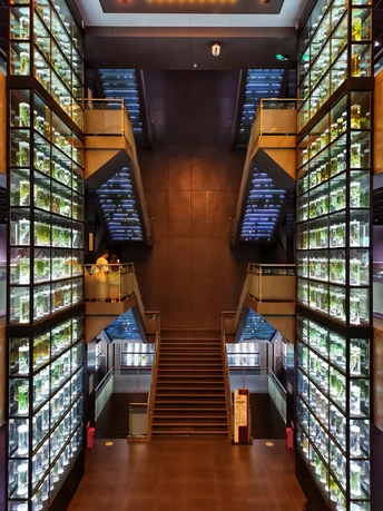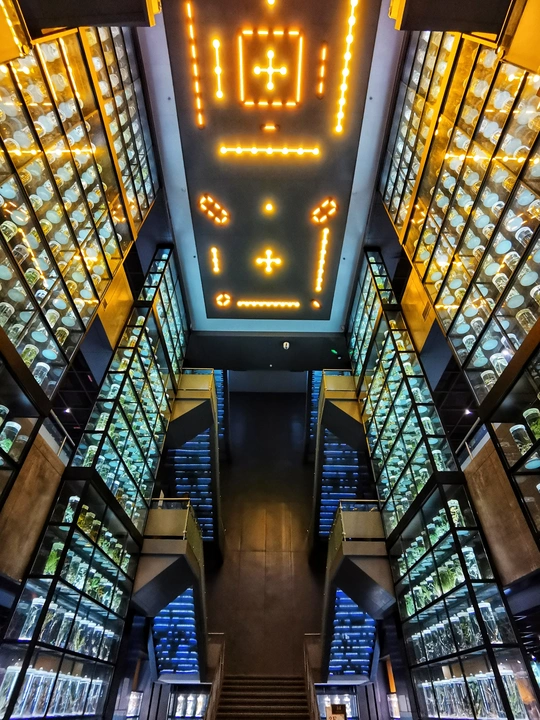 博物馆里面陈列收藏了成百上千种药材,整整齐齐的泡在玻璃瓶溶液里,非常科幻