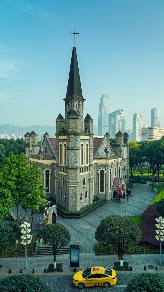 江北中央公园内的福音堂,一览城市风光的最佳地方!