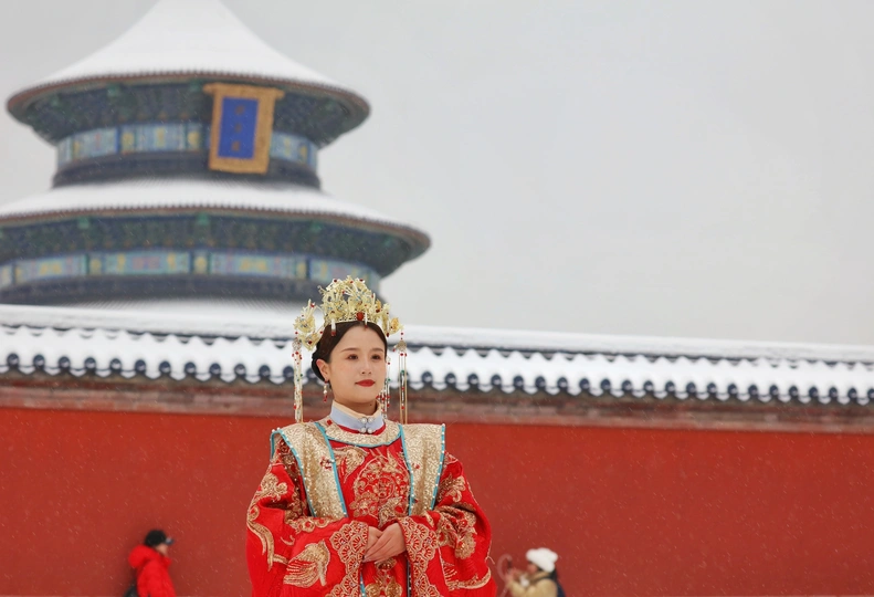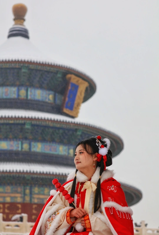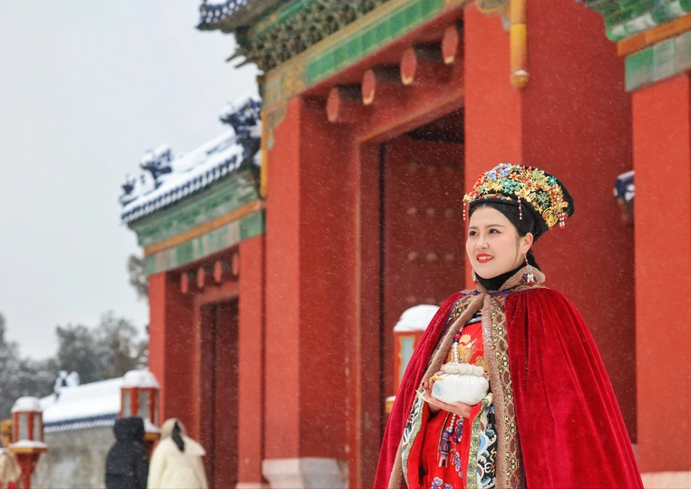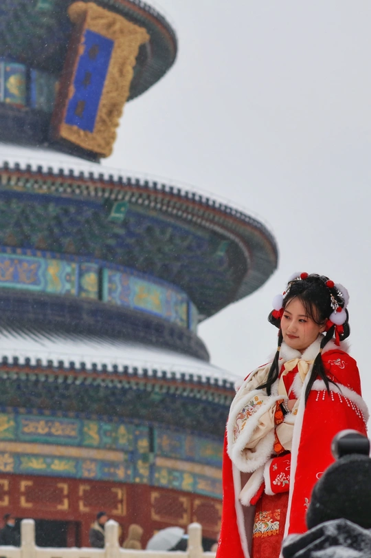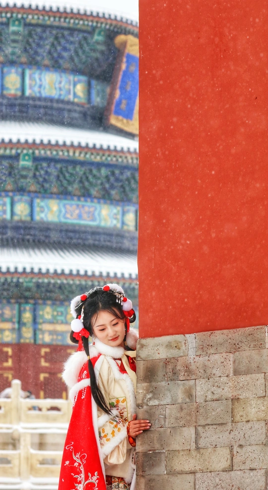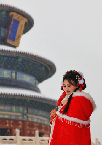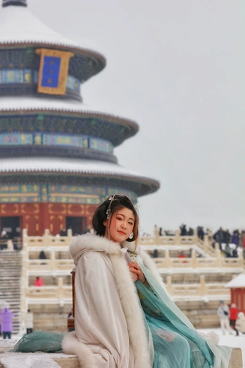 在这个美丽的冬日里,瑞雪降临天坛公园,给整个公园带来了别样的风情。今天,天坛公园聚集了大批美女前来拍摄复古写真,用镜头记录下这个梦幻般的冬日景象。