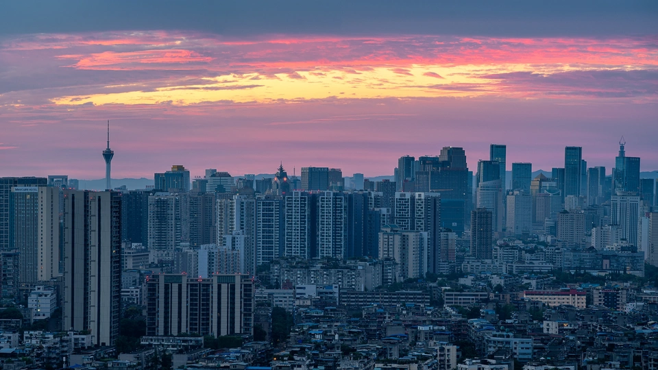 成都夏季的朝霞 最近成都一直天气不好,雾霾严重,一个月左右没看到太阳了,怀念盛夏