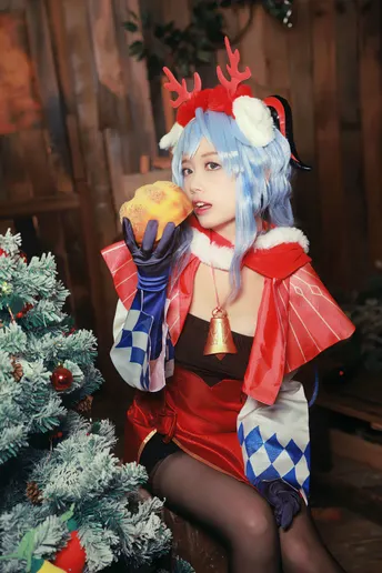 原神cos摄影,第一次棚拍,找了一个圣诞主题的景