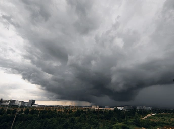 黑云压城,雨幕在远处形成,大雨逐渐逼近。