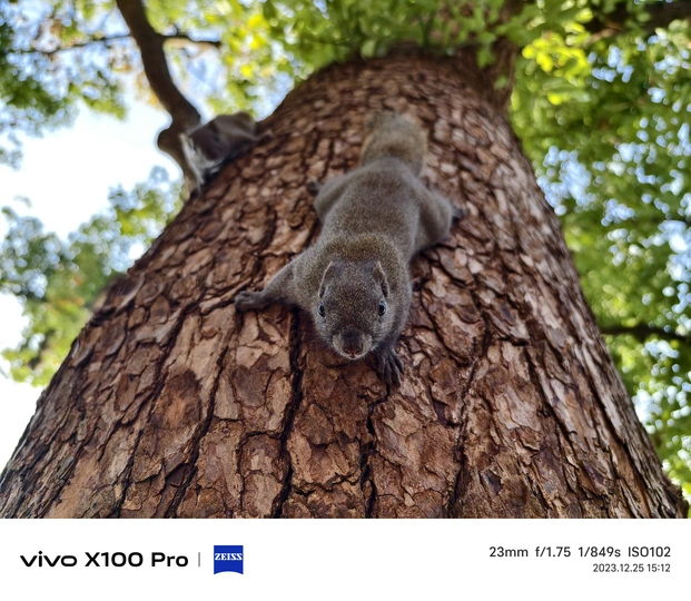 几只松鼠爬下树觅食,我用广角微距拍下这一瞬间