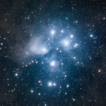 昴星团(Pleiades),位于金牛座天区明亮的疏散星团,构成星团几个亮星在昴宿。在北半球晴朗的夜空用肉眼就可以看到它,通常见到有六七颗亮星,所以又常被称为七姊妹星团。3000 余颗恒星汇集,横宽13光年。 焚灼远程天文台拍摄 @米拍 @米拍社长 @米拍影像创作营