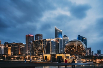 杭州城市阳台,乌云配上黑金色调的建筑。