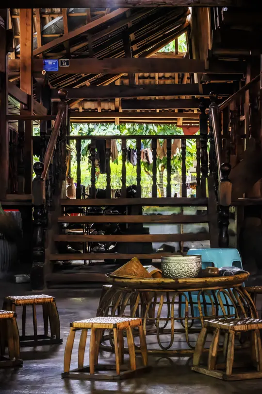 木桌竹椅,绿荫如茵。傣家的吊脚楼。