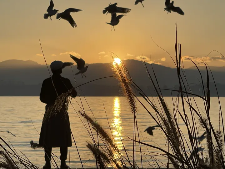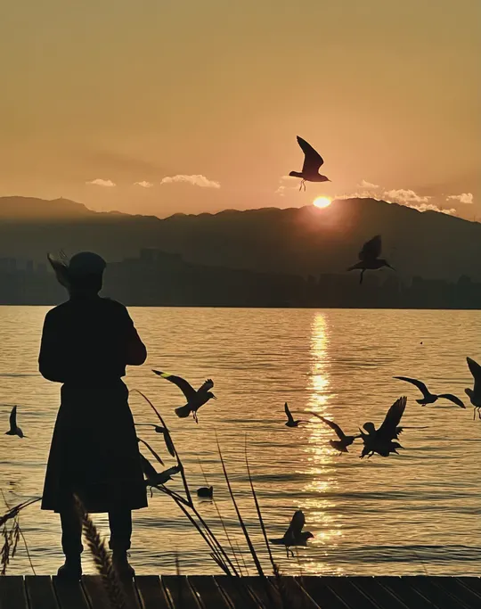 当海浪轻拍沙滩,人与海鸥共舞于晨曦的光影之间。这是一首赞美自然和生命和谐的交响曲,记录了人与海鸥之间深厚的情感纽带。在这个瞬息万变的世界里,让我们牢记这份纯粹的美好,让爱与和谐永驻心间。