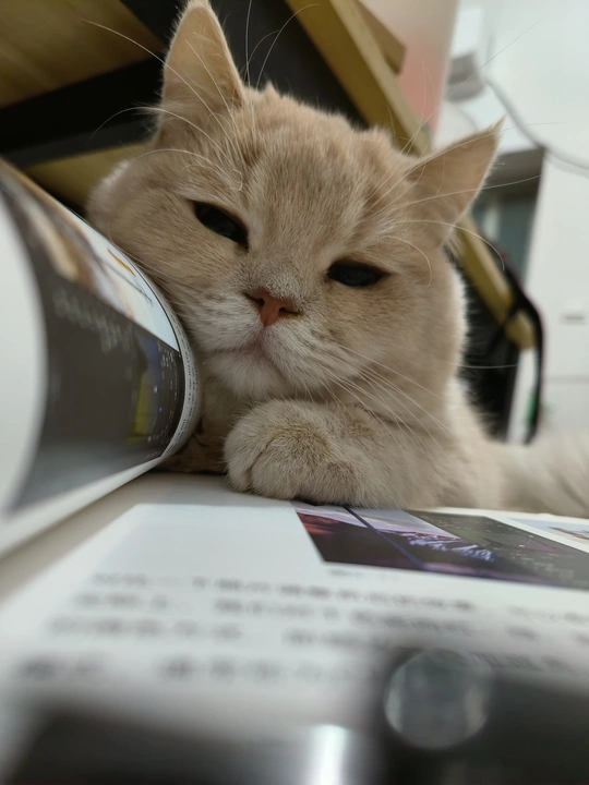 有一个可可爱爱的猫陪着你看书,被它的小可爱萌到