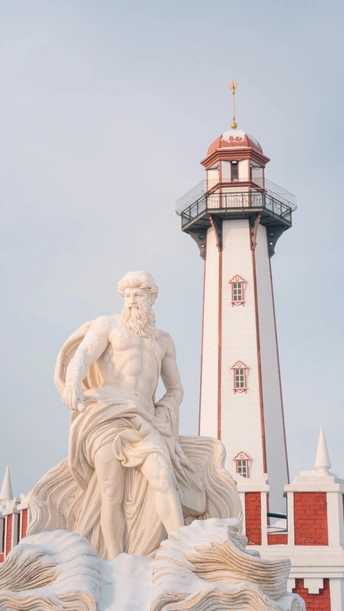 教堂、灯塔、各种姿态的雕像,这是哪个国家的森林公园? 【伏尔加庄园🏰】 ①玛利亚婚礼教堂;②圣·尼古拉教堂;③海神湾灯塔;④乡村别墅;⑤彼得罗夫艺术宫前的树下;⑥森林别墅;⑦玛莎商品店;⑧圣·尼古拉教堂左侧雕像;⑨海神湾灯塔一层入口。