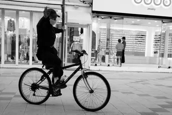 空手骑车的老人