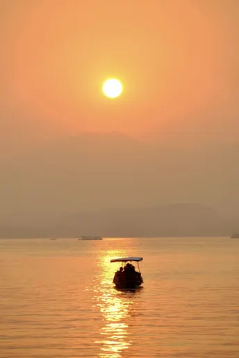 西湖的落日是一道美丽的风景线,吸引着无数游客驻足观赏。每当夕阳西下,天空中的云彩被染成了橙黄色,整个西湖都被镀上了一层金色的光辉。远山近水、亭台楼阁都被晚霞映衬得格外壮丽,给人一种宁静而庄重的感觉。在西湖边,你可以选择一个合适的位置,如苏堤春晓、平湖秋月或者雷峰夕照等景点,静静地等待落日的出现。当太阳渐渐西沉,光线变得柔和而温暖,整个西湖都沐浴在金色的光华中。水面上波光粼粼,与天空中的晚霞相互辉映,仿佛是一幅绝美的油画。除了欣赏美景,你还可以在西湖边参加一些活动。比如,你可以租一只小船,在湖上自由自在地漫游,感受夕阳余晖的温暖。或者在湖边漫步,聆听湖水轻轻拍打岸边的声音,让心灵得到放松和净化。总之,西湖的落日是一道不可错过的风景线。无论你是想寻找一处宁静的角落发呆,还是想在美丽的景色中放飞心情,西湖的落日都是一个不错的选择。所以,如果你有机会来到西湖,不妨选一个好天气,带上家人或朋友,一起来欣赏这道美丽的风景吧!