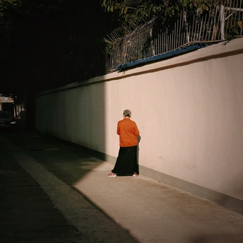 一天下午 阳光正好 在小关庙街扫街 恰好碰见这这位红衣奶奶在晒太阳