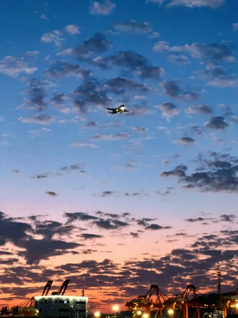厦门的冬天依然很通透,天上的民航与火烧云交相辉映