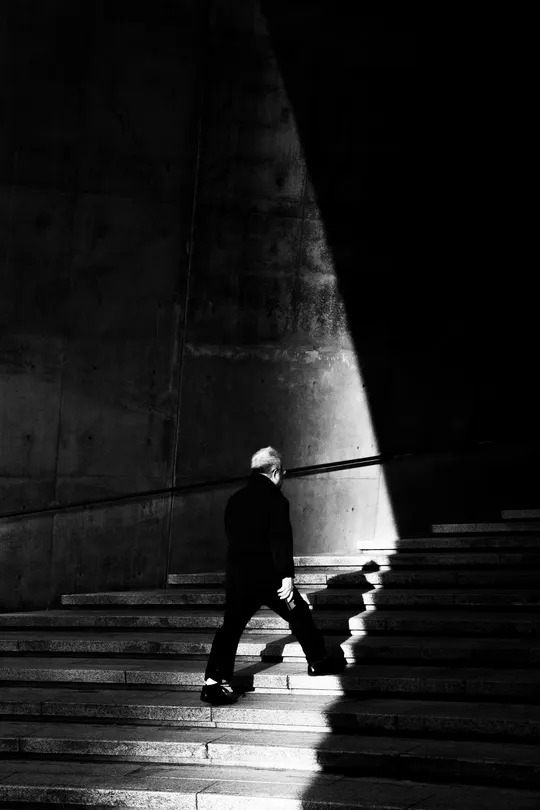在夕阳的投影里,刚好出现以为步伐矫健的老人,他花白的头发,闪亮的皮鞋,手机有力得握着的手机,成了画面中我喜欢的焦点。