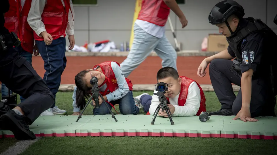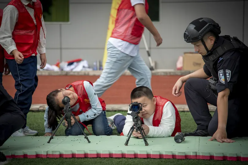 警营开放日中的小朋友