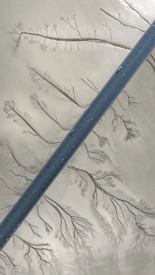 摄于浙江钱塘江嘉绍大桥的潮汐树。