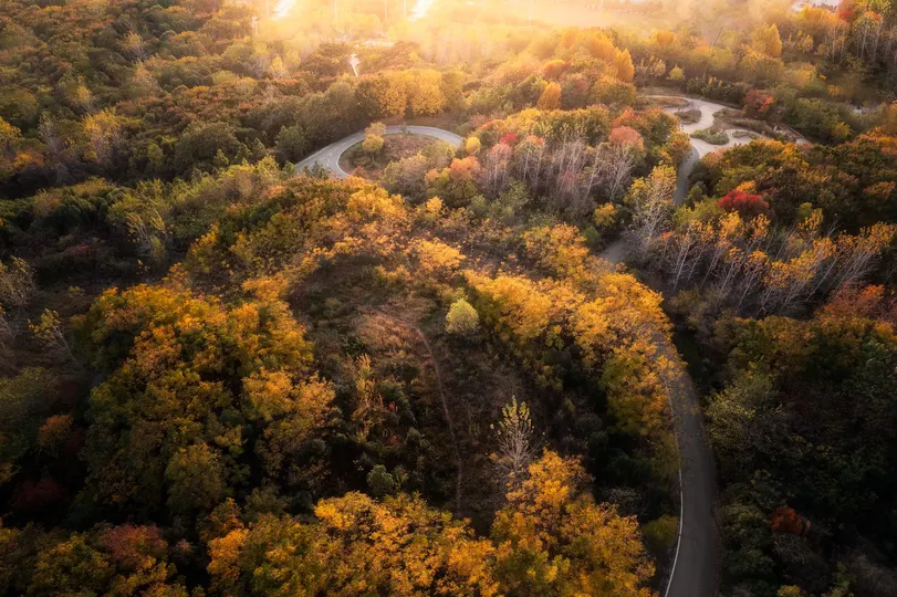 在备战考研之际,有一个下午我发现秋天的黄龙山十分好看,好奇心驱使,我拿起无人机飞到上面去看看发现果然很经验,于是便拍下这两张照片。