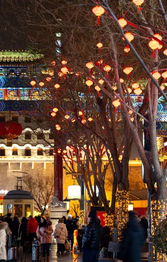 前门北京坊的花灯已经亮起来啦,装扮一新的大街,给城市换上了新装。华灯初上的时刻,游人满满,一片浓郁的过年氛围。