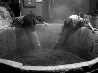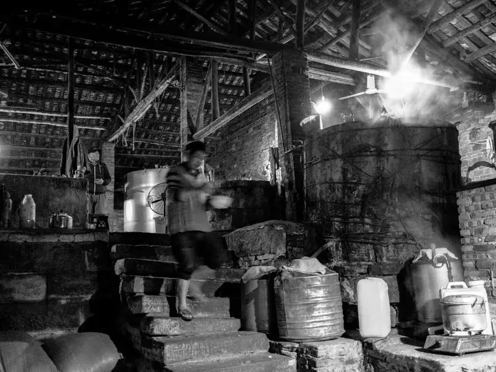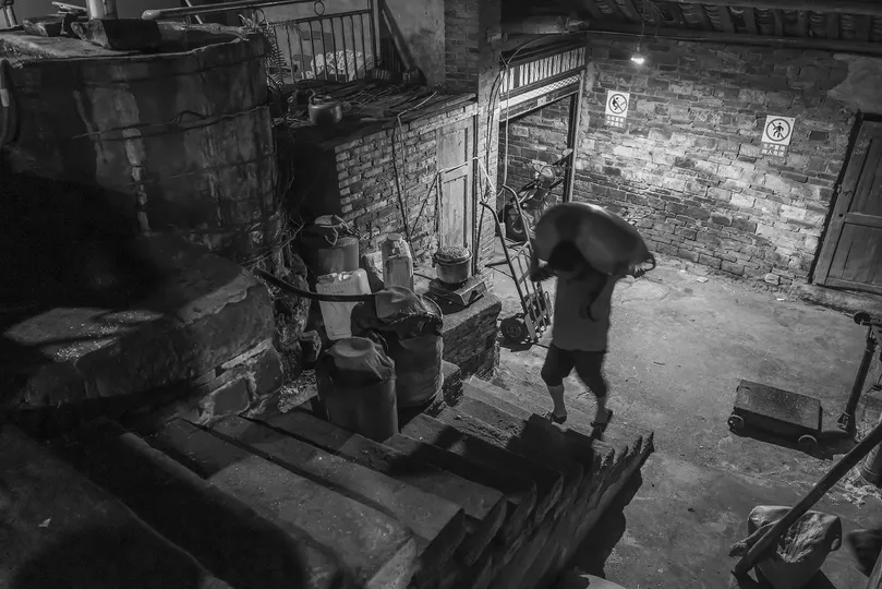 “共饮长江水”摄影工作坊系列作品,在以酒而闻名的宜宾,现代化的大酒厂其先进的生产设备要有尽有,而纯人工的老酒厂却有着旺盛的生命力。接下来,跟着照片我们一起走进老酒厂,近距离观看在青瓦房下,工人们的制酒工艺。拍摄于2023年3月15日—21日。 1 古老的厂房 摄影 崔连忠 2 清理料锅 摄影 崔连忠 3 工人备料 摄影 陈尚品 4 填料 摄影 彭永平 5 准备封闭蒸锅 摄影 孙宴生