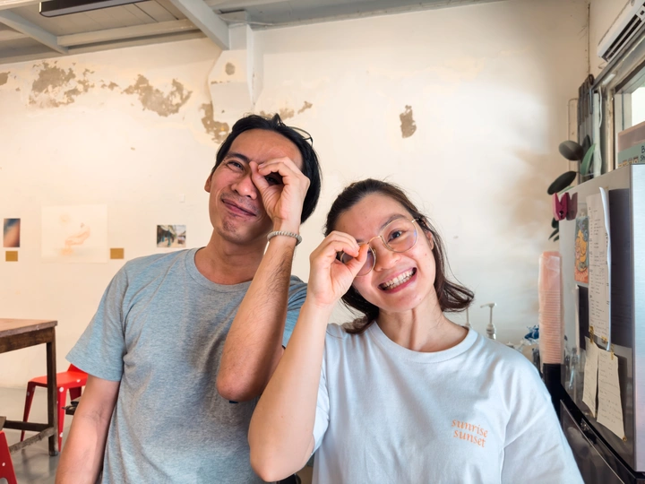 曼谷一家咖啡厅,喝咖啡得创作爱的主题作品,否则,就跟去其他咖啡厅没什么不同。 封面图为老板与老板娘