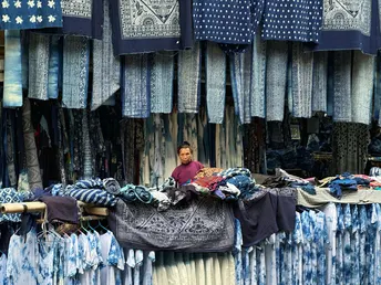 2023年4月20日,贵州黔东南,靛染铺前沿街售卖的侗族靛染。