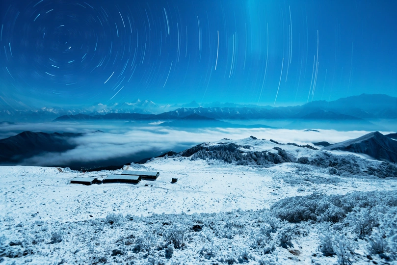 冬日的华尖山,白雪皑皑,星光灿烂。