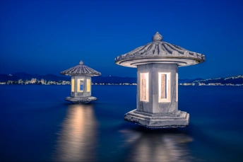 晚霞蓝调时刻的翠光亭