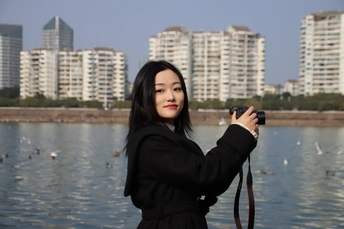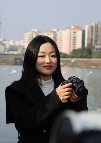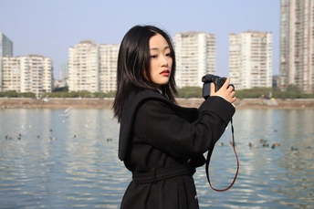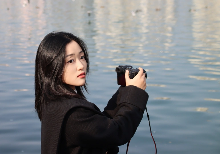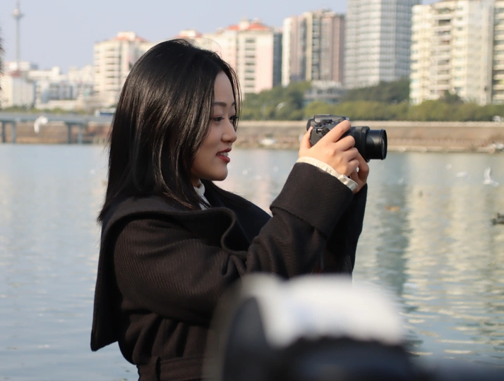 江边来了个美女摄影师,你们猜她拍的啥?,,,