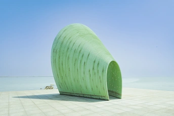 在梁子湖中的梁子岛上,有个简洁的贝壳建筑,非常非常好看。