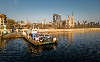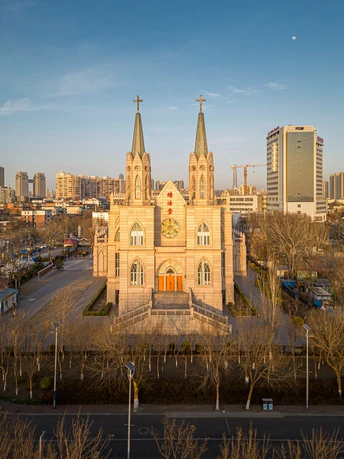 在天津的傍晚,夕阳西下,大梁子海河渡口和新建的塘沽堂仿佛成为了时光的交汇点。夕阳余晖映照在海河水面上,泛起一片金色的涟漪,渡口上的船只悠悠地行驶着,散发出一抹宁静而美丽的气息。 大梁子海河渡口是连接天津市区和滨海新区的重要交通枢纽,这里车水马龙,人来人往,熙熙攘攘。夕阳下,渡口灯火辉煌,灯光倒映在波光粼粼的海河中,宛如一幅流动的画卷,令人心旷神怡。 而新建的塘沽堂则是一座现代化的教堂建筑,巍峨壮观,散发着宁静与祥和的氛围。夕阳斜照在教堂的玻璃幕墙上,映出彩色的光影,璀璨夺目,仿佛是上帝的眷顾和祝福。 傍晚的天津大梁子海河渡口和新建的塘沽堂,各具特色,却同样让人心驰神往。海河上游过的船只穿梭往来,留下一道道波纹,与教堂的现代气息形成鲜明对比;而教堂内传来的钟声,清脆悦耳,仿佛在默默诉说着信仰与希望。 夕阳渐渐西沉,天空渲染着金黄色的余晖,营造出一种梦幻般的美景。渡口上灯火阑珊,教堂的十字架在夕阳下闪烁着神秘的光芒,构成了一幅宁静而美丽的画面。